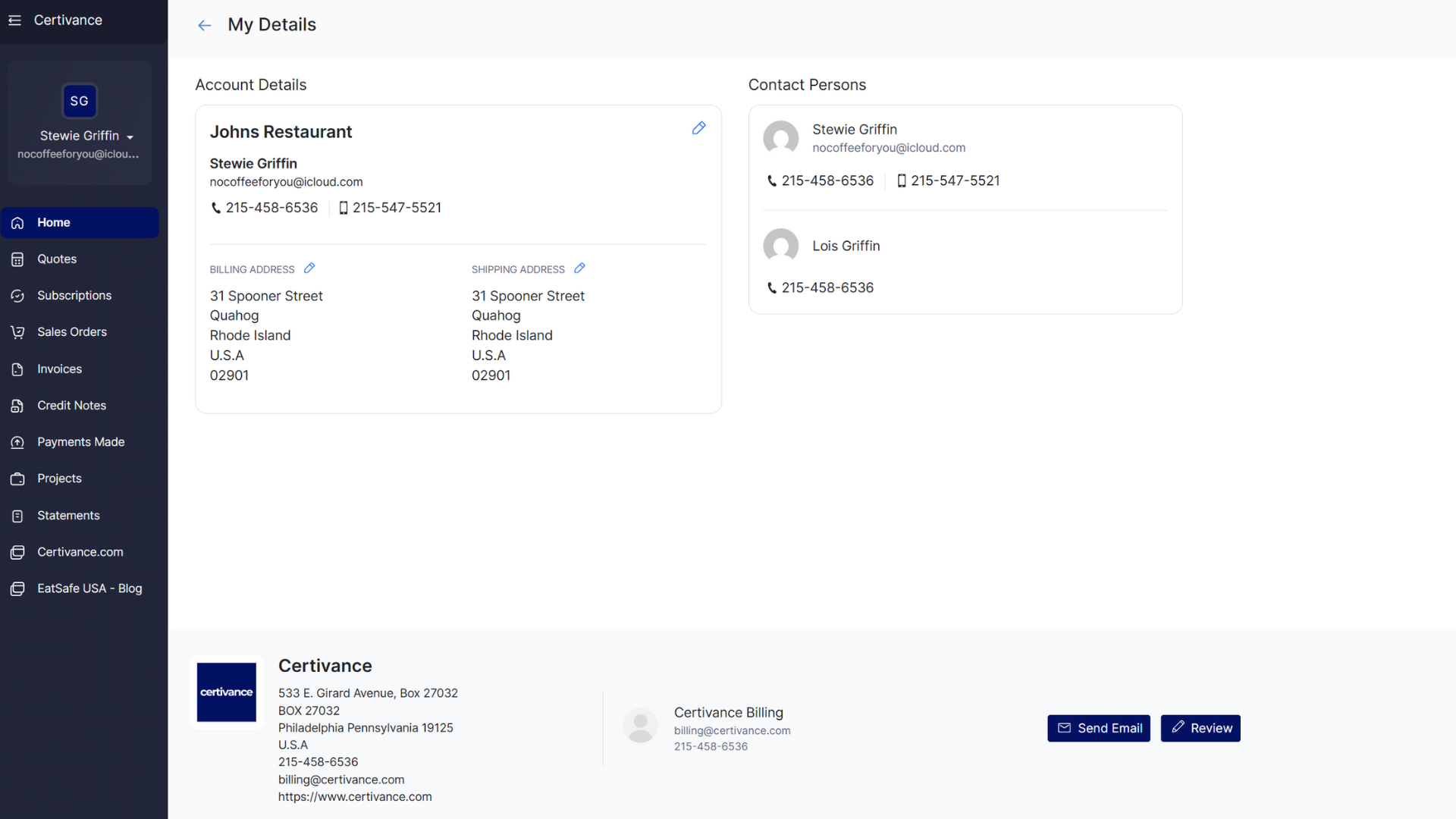 Billing Information – address, email for invoices, tax ID if applicable.