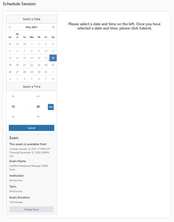 Click Submit to schedule your exam