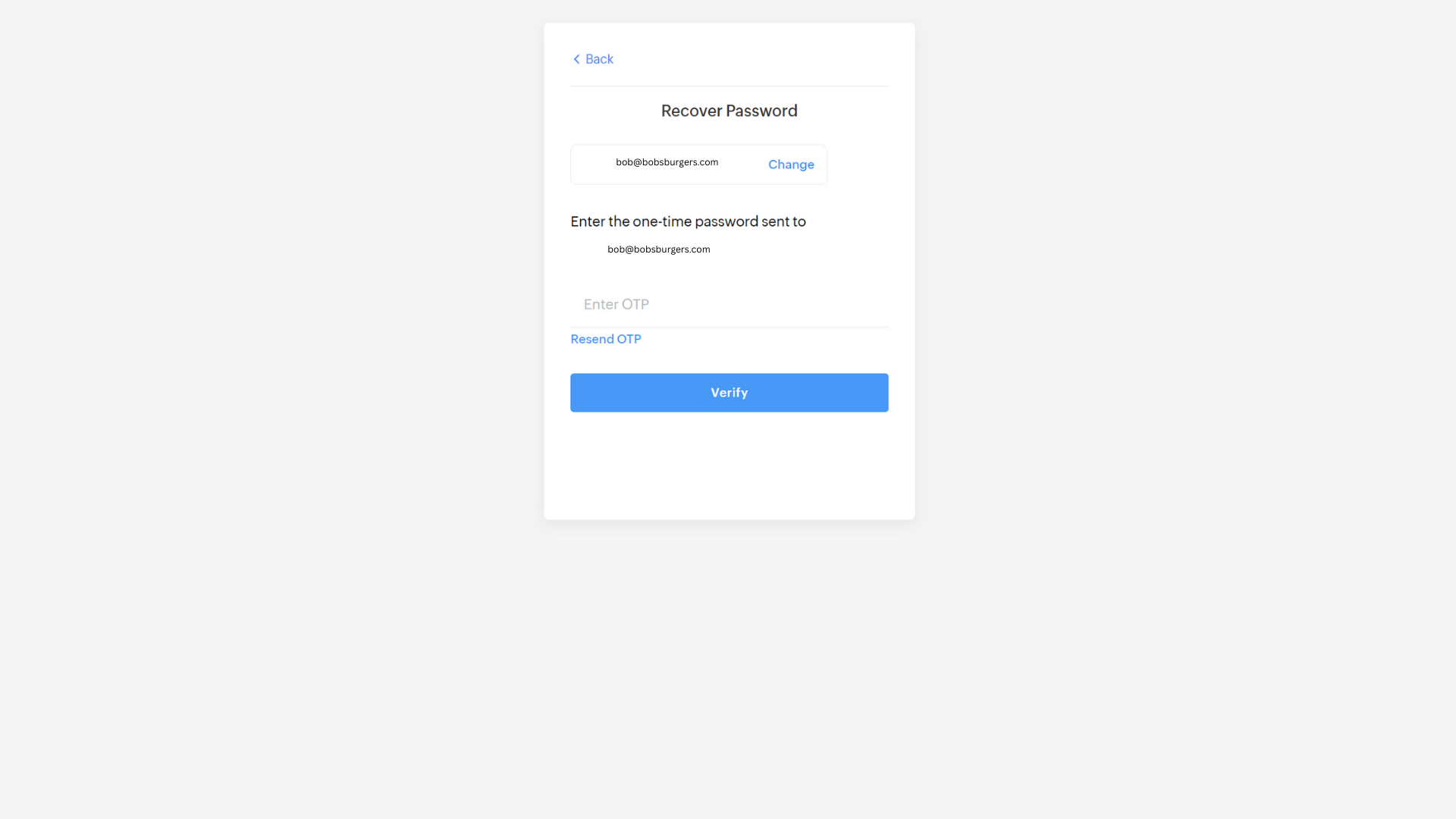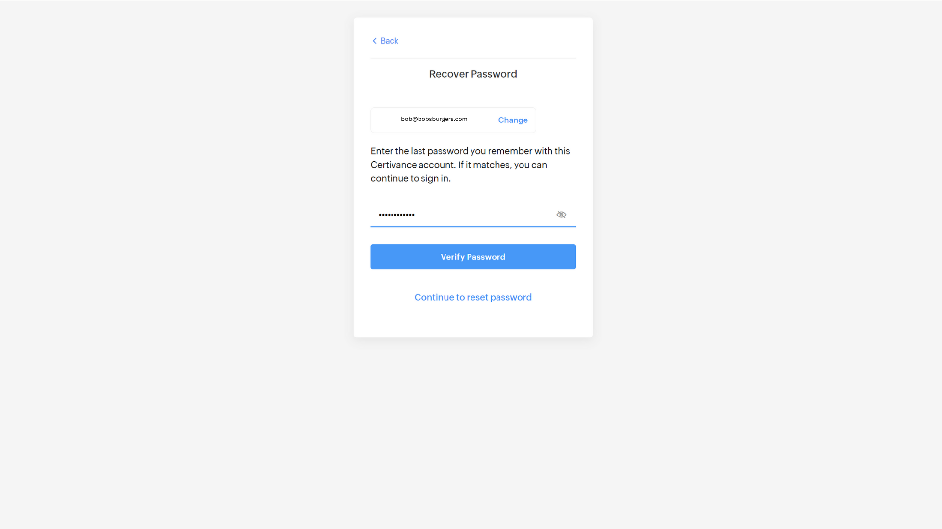 Enter this code on the Recover Password screen and click Verify.