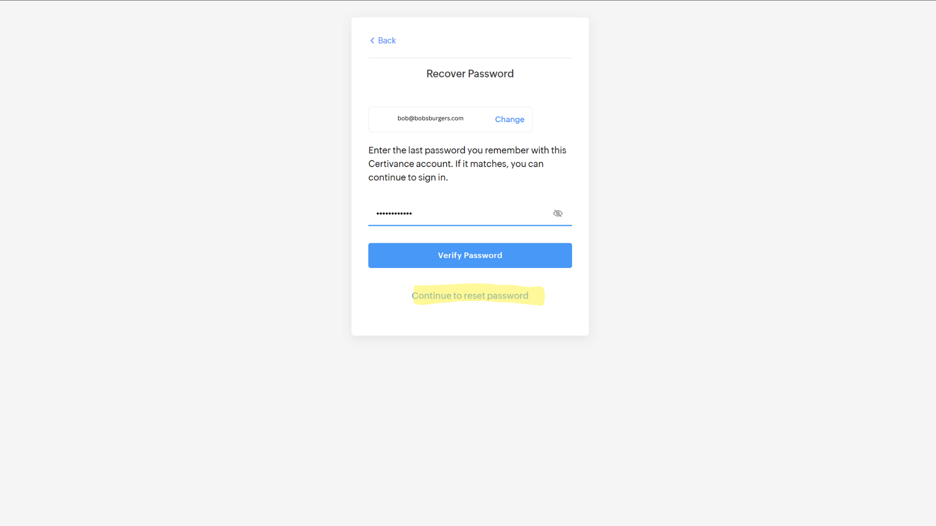 If you remember your last password, enter it and click Verify Password.